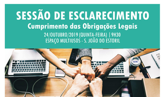 Cumpre os requisitos exigidos para o cumprimento da sua atividade? A Associação Empresarial do Concelho de Cascais (AECCascais), em parceira com o Grupo Nucase, realizam uma sessão de esclarecimento, subordinada ao tema “Cumprimento das Obrigações Legais”, no próximo dia 24 de outubro, pelas 09h30, no Espaço Multiusos de S. João do Estoril. Junte-se a nós!