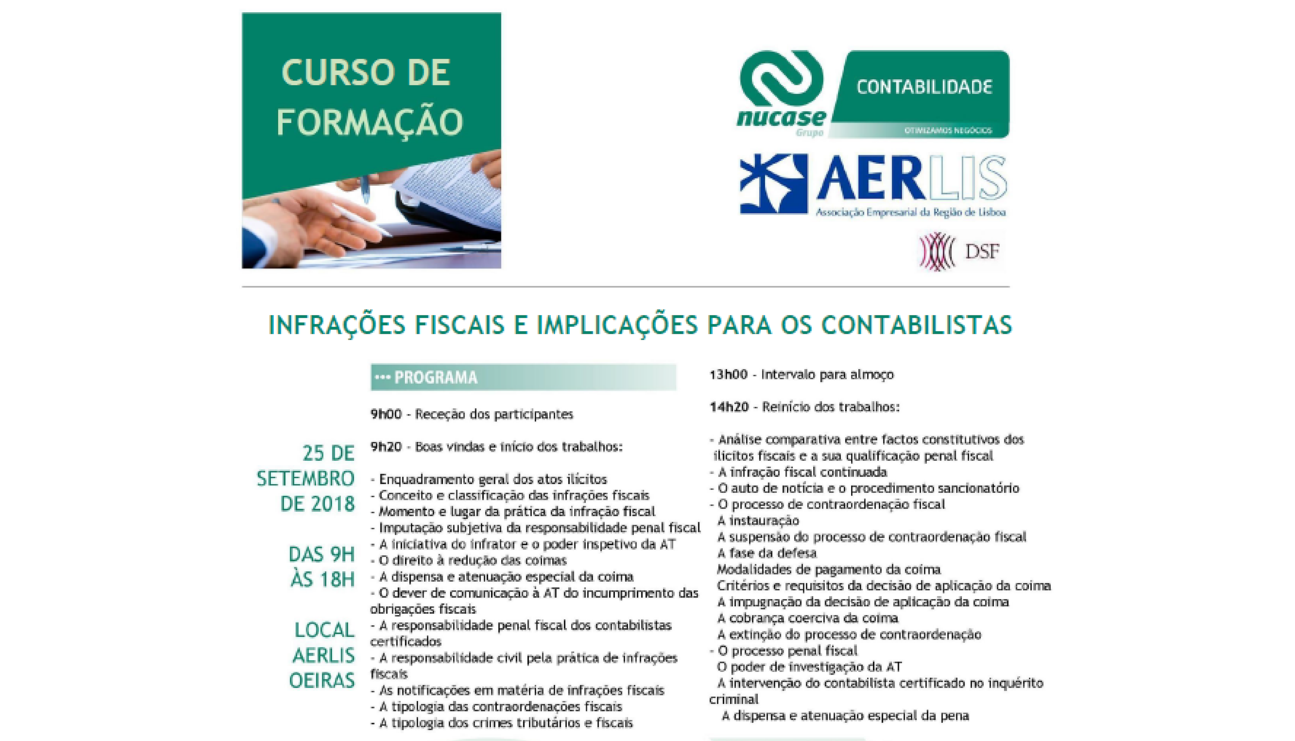 A Nucase, em parceria com a AERLIS, realiza no dia 25 de setembro, uma formação que permitirá conhecer os tipos de contraordenação e respetivas características, analisar os procedimentos a seguir em cada fase do processo e os meios de defesa e ainda conhecer as responsabilidades de âmbito civil e penal, dos contribuintes e dos seus responsáveis.